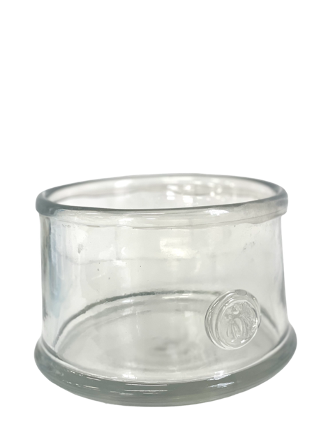 This exquisite vase boasts a clear, pressed glass design adorned with a charming French bee stamp.