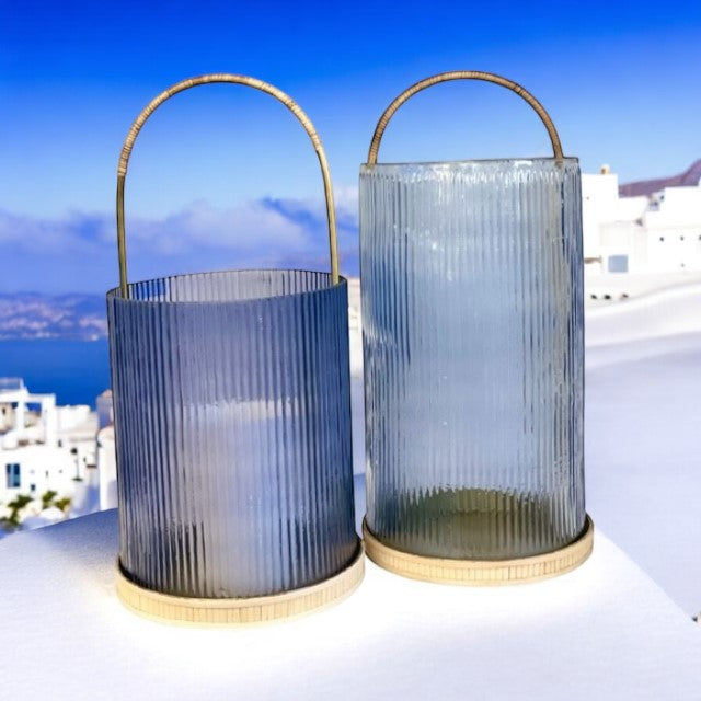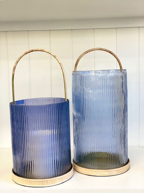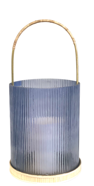 433Bl - Lantern :Small Blue Ribbed Glass 26Cm