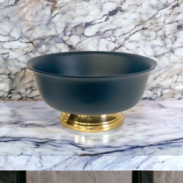 456G - P/Coated Bowl/Gold Base Black 33X15