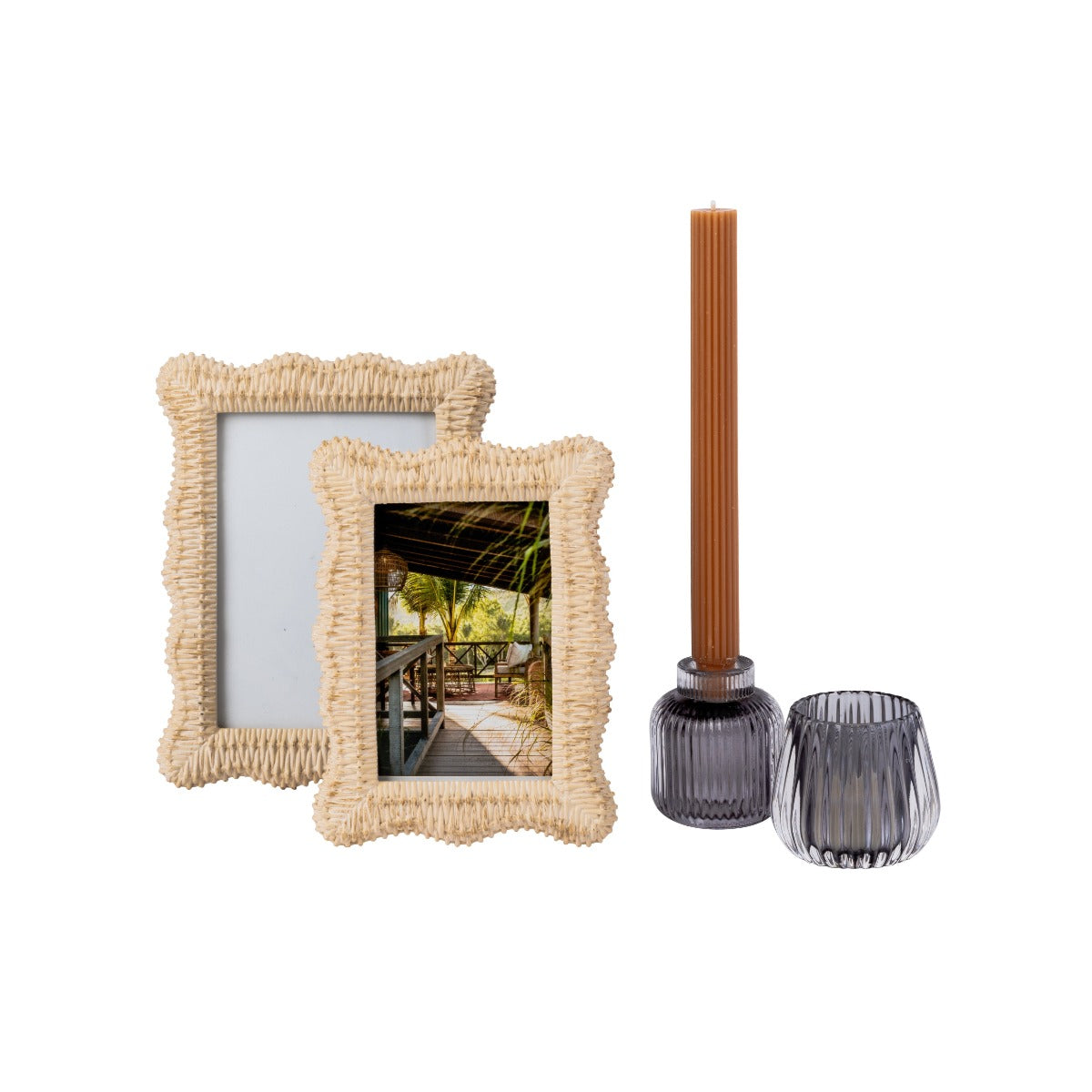 Crafted from glass in a round shape, the smoky hue of this tealight holder creates a subtle, reflective glow that is accentuated by delicate rib detailing. Measuring 8.5x7.5cm, its elegant dimensions add an exclusive touch to your home decor.