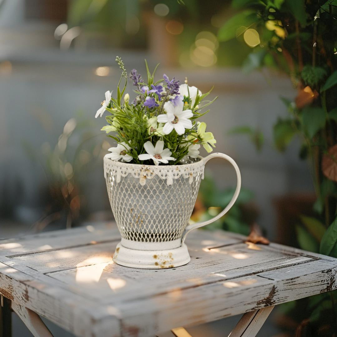 French Provincial 'Teacup' Candleholder/Plnater w/fleur -de-lis 17x12x13cm