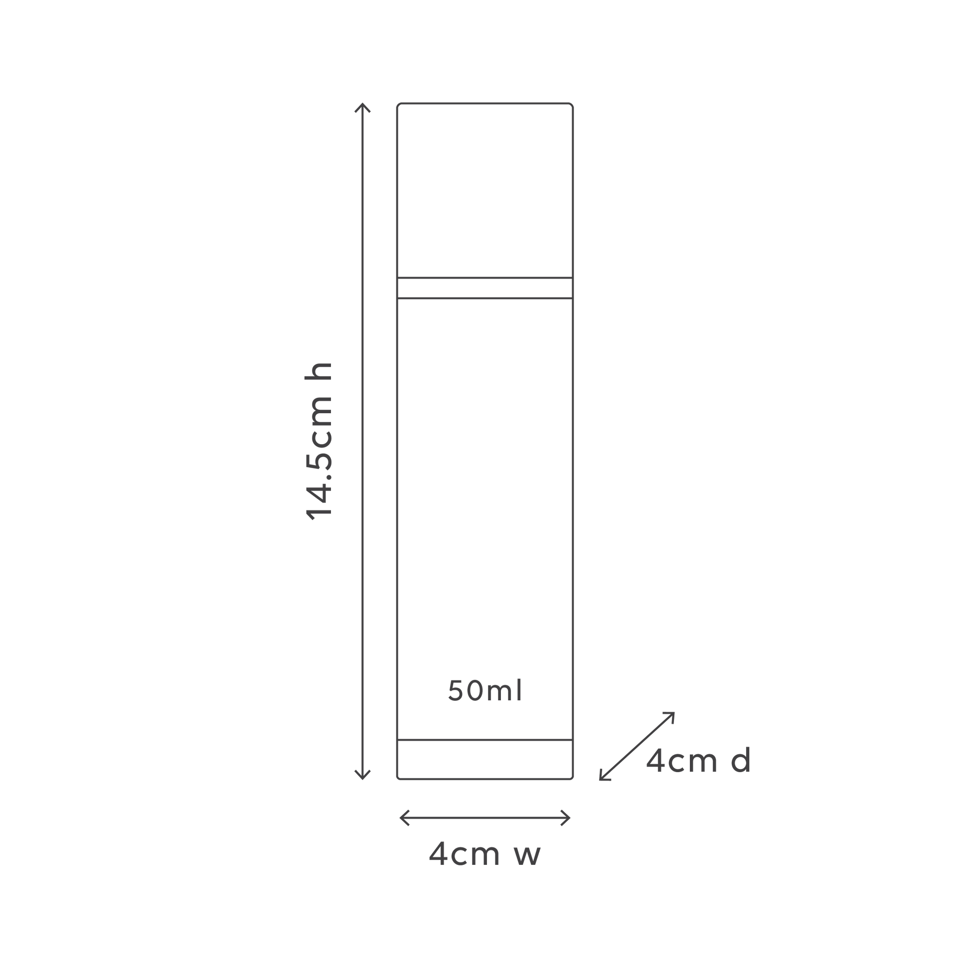 Our 50ml bottles are made from durable PP plastic and feature a refillable inner vessel. The box, inner bottle, and both caps are recyclable. The outer bottle and pump should be disposed of thoughtfully in general waste.