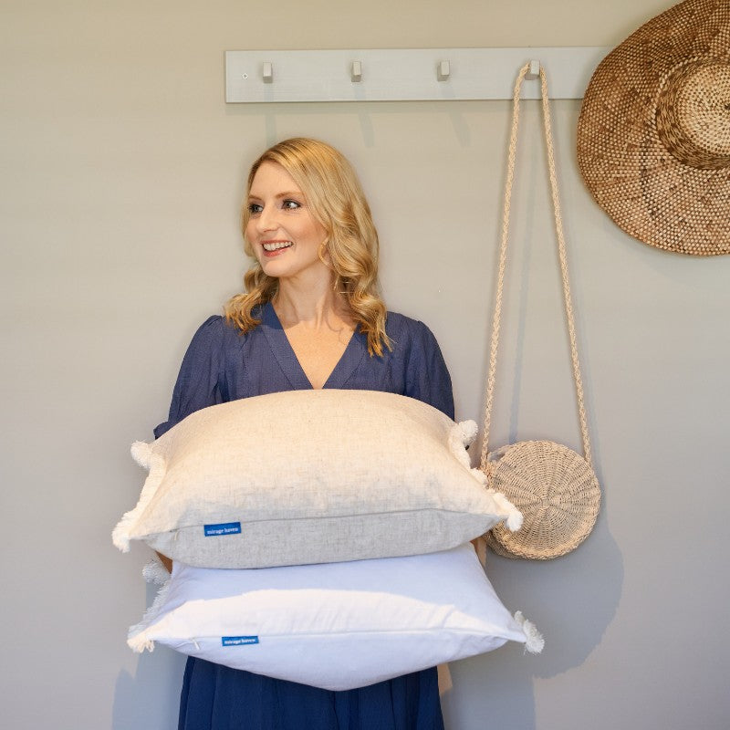 Fits 55 cm by 55 cm cushion insert, or we recommend choosing one of our premium feather cushion inserts (55 cm by 55cm).