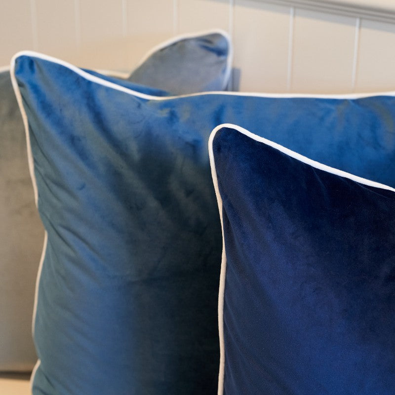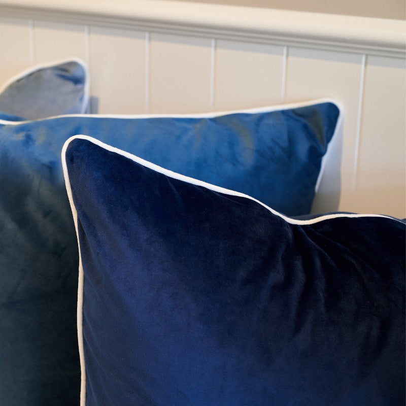 Myuna Dark Blue Premium Velvet White Piping Cushion Cover 60 cm by 60 cm