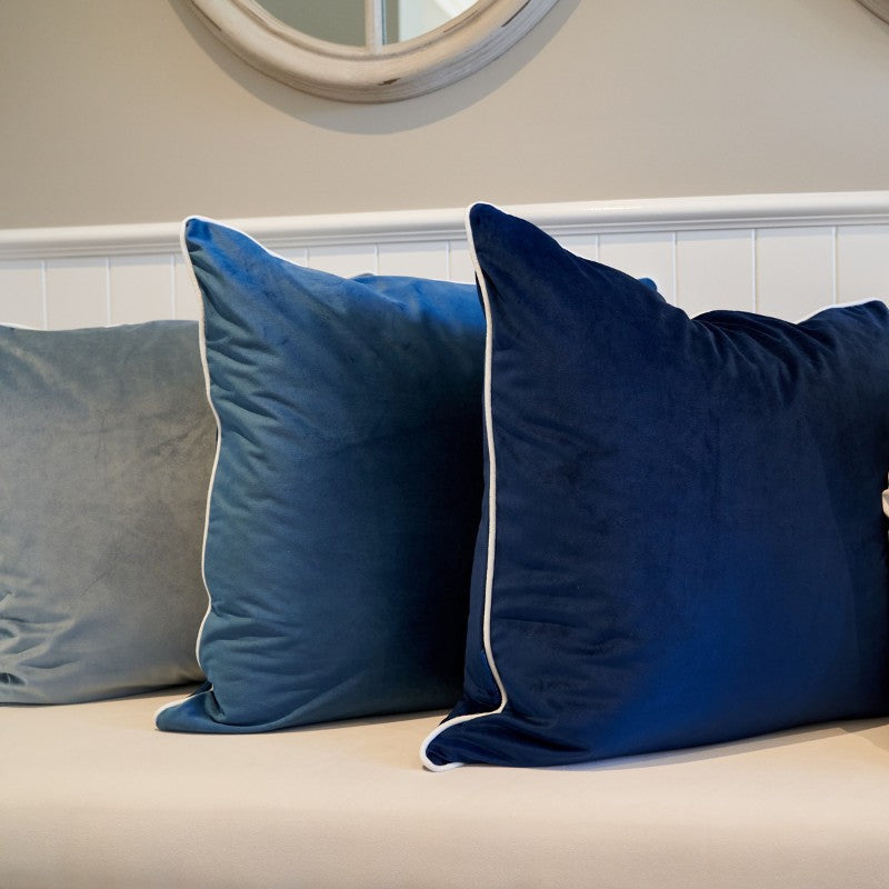 Myuna Indigo Blue Premium Velvet White Piping Cushion Cover 60 cm by 60 cm