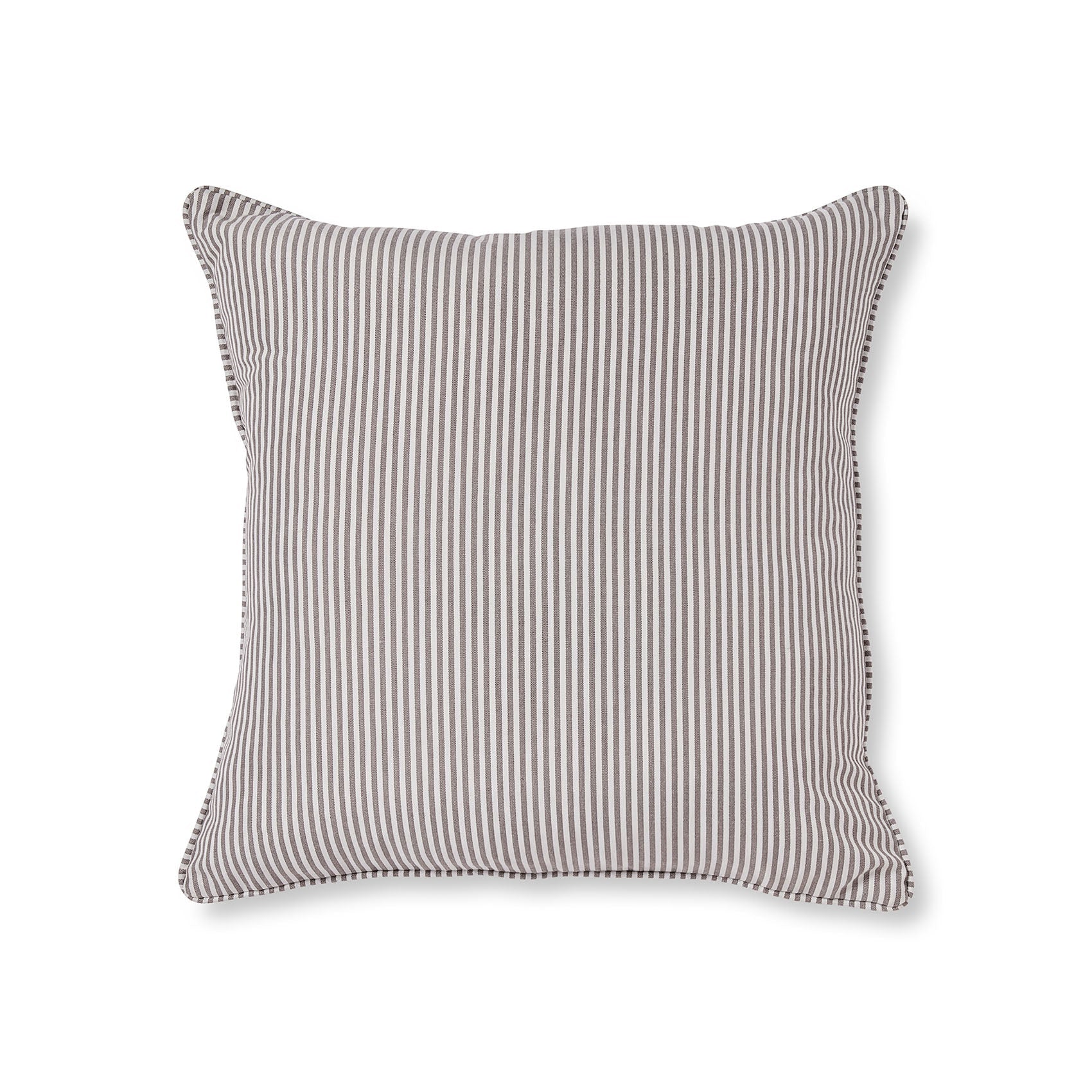 • The Morris Grey Stripe Cushion is an interior must-have. Featuring a silm grey and white pinstripe pattern with narrow flange, this piece embodies style and comfort.