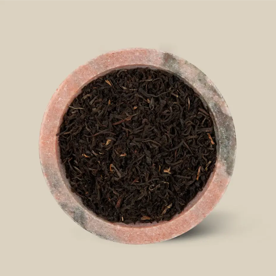 • English Breakfast tea is the most popular tea in British tea culture. Traditionally, it is a blend of teas originating from Assam, Ceylon or Africa. Our English Breakfast is blended using a beautiful rich Indian black tea and a soft smooth Ceylon black tea. Assam Dejoo Estate is renowned for its ethically operated farms, which care for its workers and environment and Ceylon Kenilworth for it's consistently high-graded teas. This is a full-bodied, robust, and rich. A perfect morning brew to start your day. The high tannin levels in this tea are what makes it go perfectly with milk and sugar.