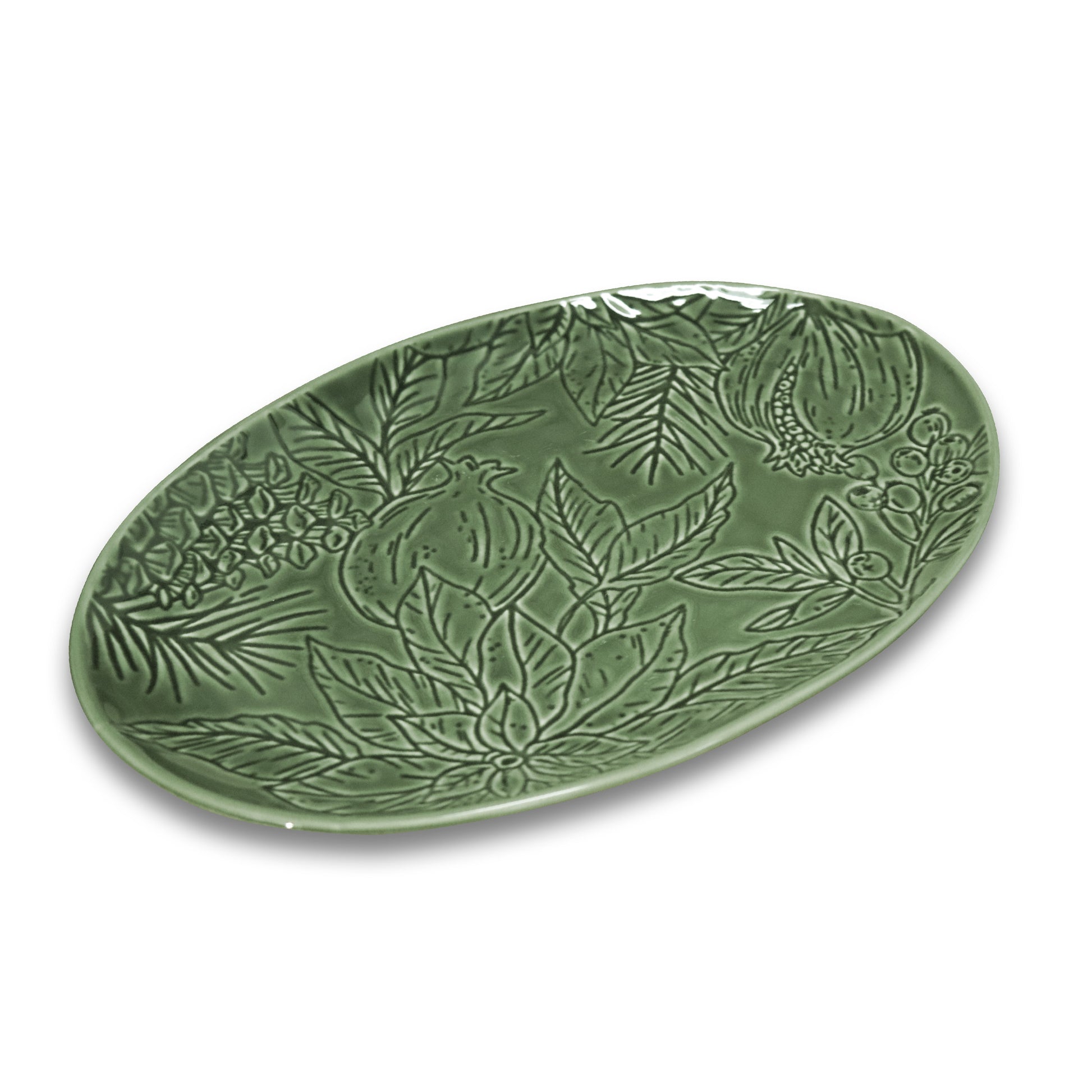 Poinsettia Green Engraved Platter 36X24X25Cm