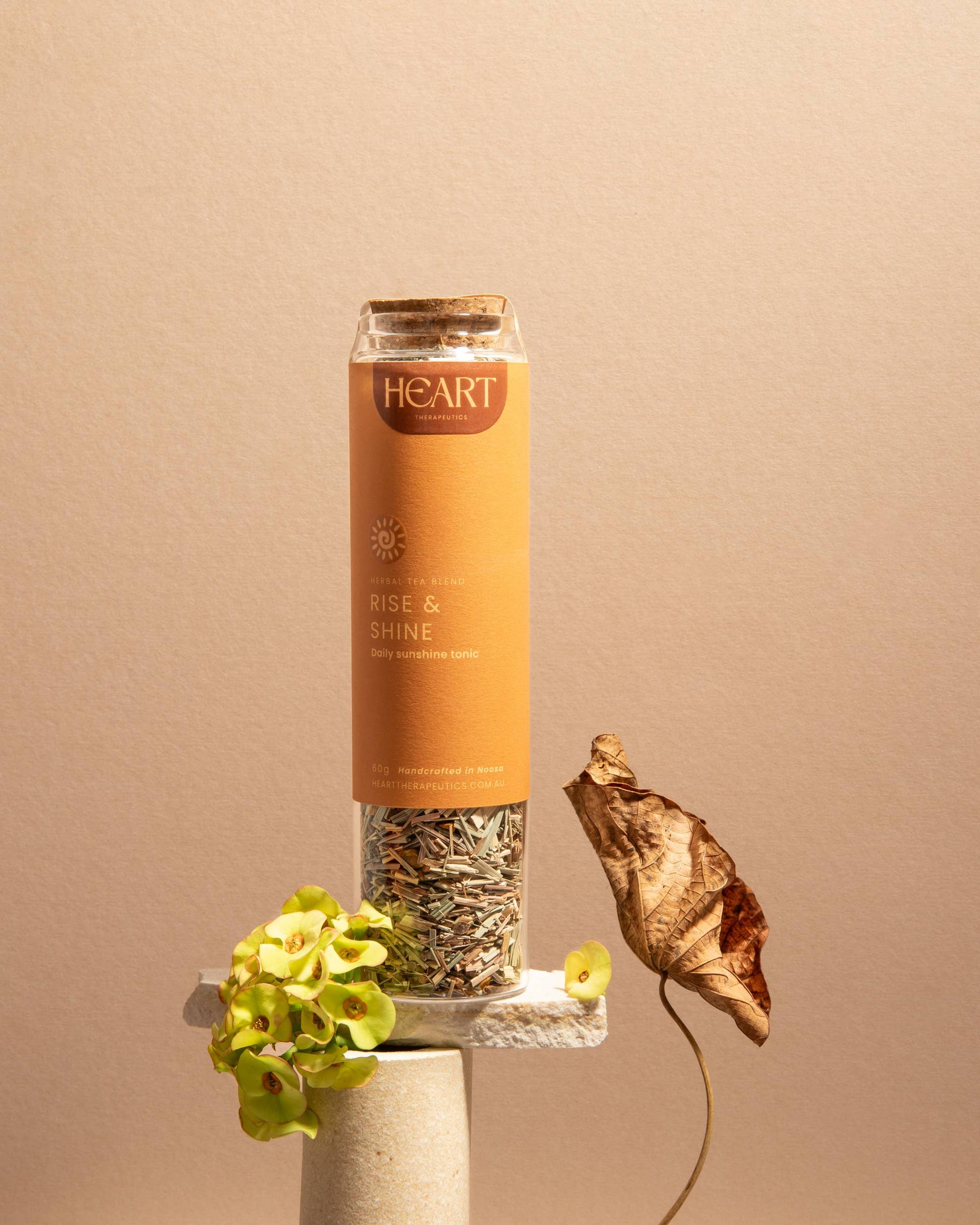 • Rise and Shine; the ultimate uplifting, daily powerhouse herbal tea blend. A golden elixir made up of premium organic herbs that are used in traditional western herbalism. Adoptogenic, anti-inflammatory, circulatory stimulating and immune modulating herbs, make this the perfect daily herbal tea ritual designed to give you a great supportive boost when you need it the most. On a base of Lemon grass and Ginger, our unique combination of traditional herbs will have you pouring multiple cups throughout the day. This is your ultimate herbal tea ritual, Enjoy xx Actions: Adaptogenic (specific for physical stress and fatigue), immune modulating, circulatory stimulant, Anti-inflammatory, Antioxidant, Blood sugar stabilising.
