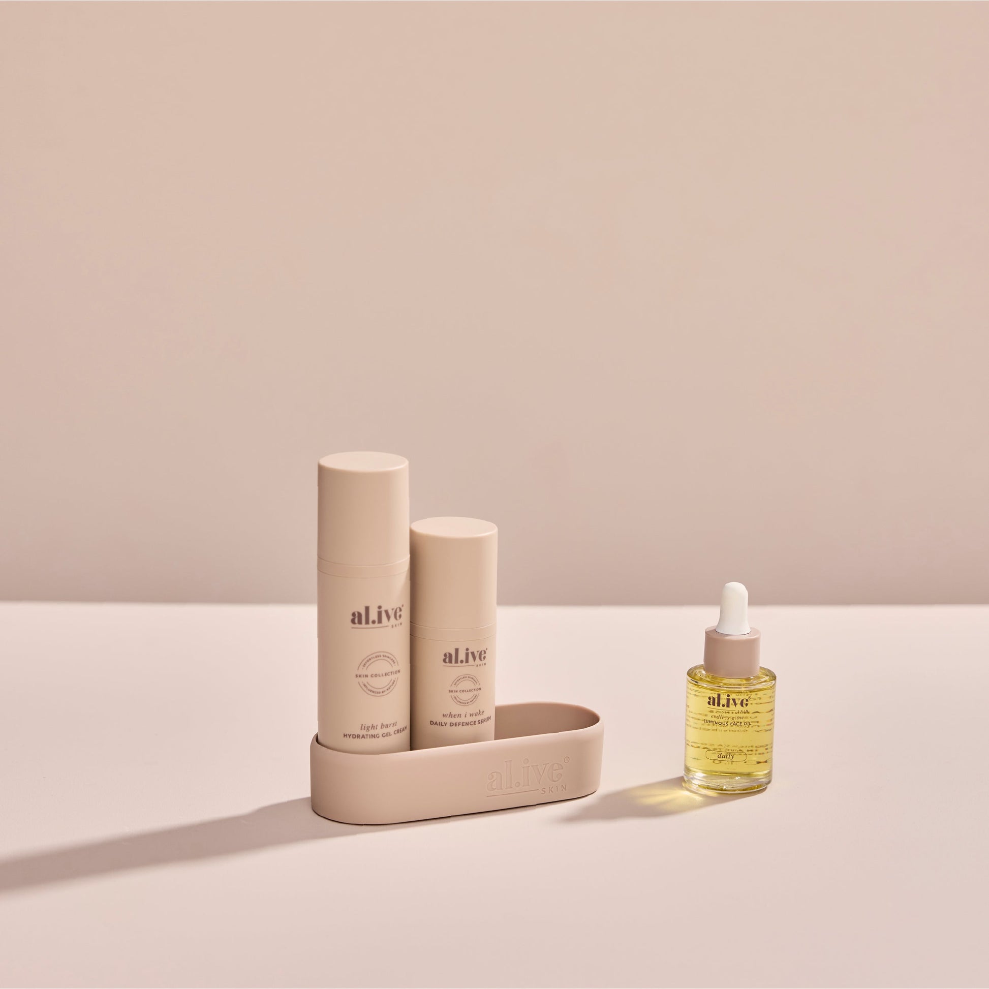• Our three-piece tray is designed for the curated skincare ritual - compact, purposeful, and ideal for holding your most essential steps. Whether you’re short on space or prefer a streamlined routine, this elevated design keeps your products front and centre, encouraging consistent use and making it easier to build a ritual that lasts.