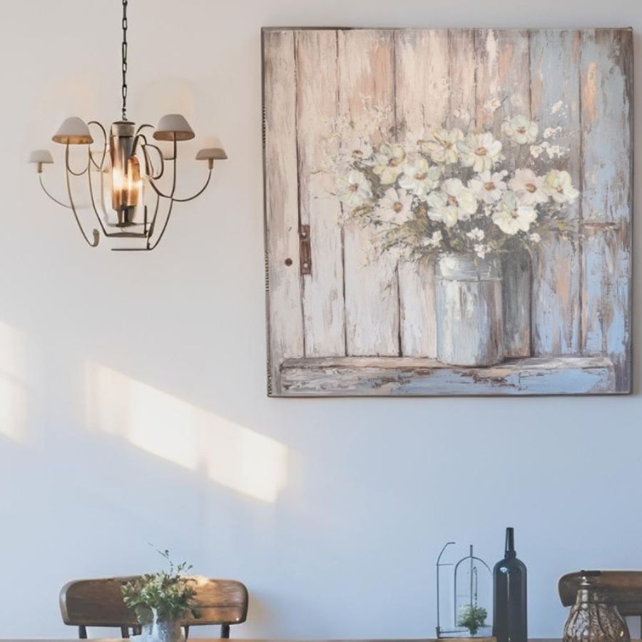 White Flowers Scene on Canvas - Textured Oil Painting Wall Art 56x3x56cm