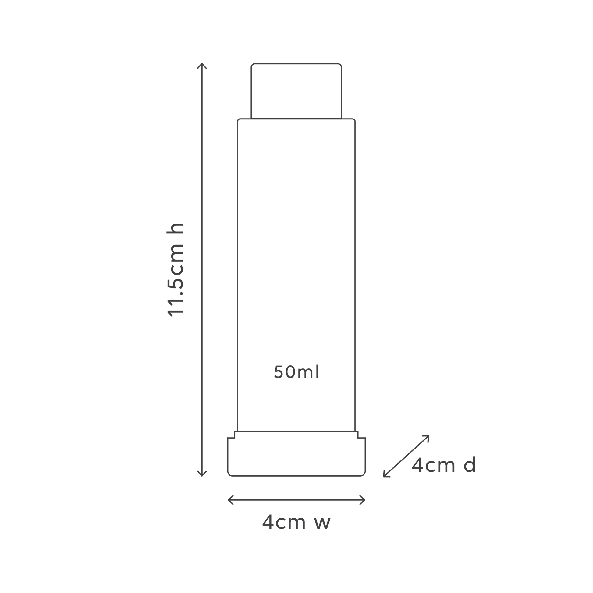 Our 50ml refill bottles are made from PP plastic, with a recyclable bottle, cap, and box.