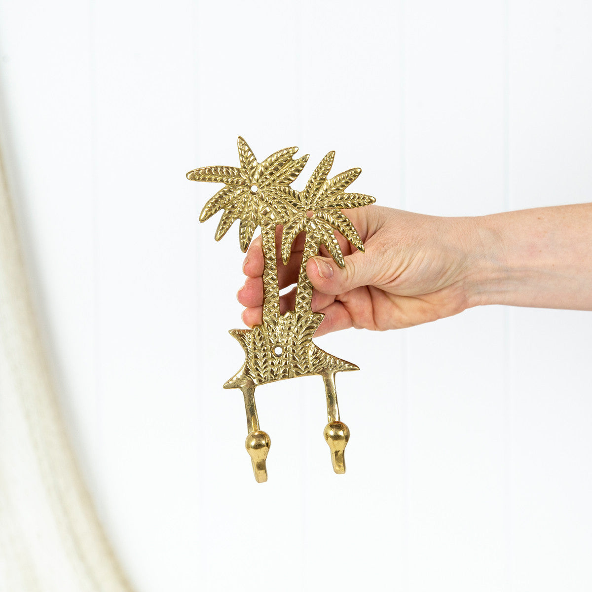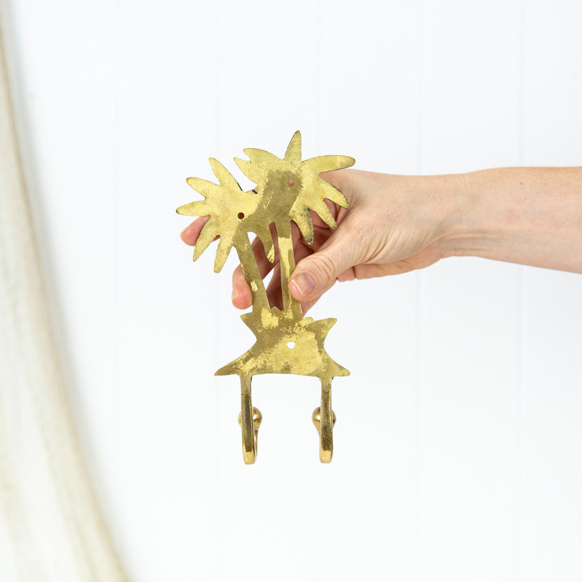 • This hook is made from shiny brass and has two palm trees, and two hooks.