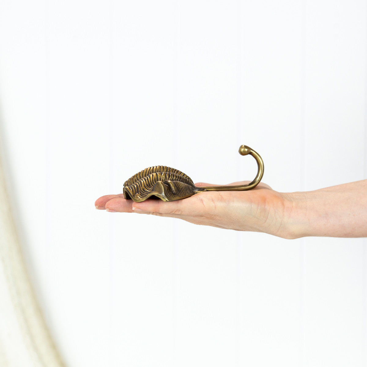 • 这个挂钩由经过暗色处理的黄铜制成,带有蛤壳状外观。