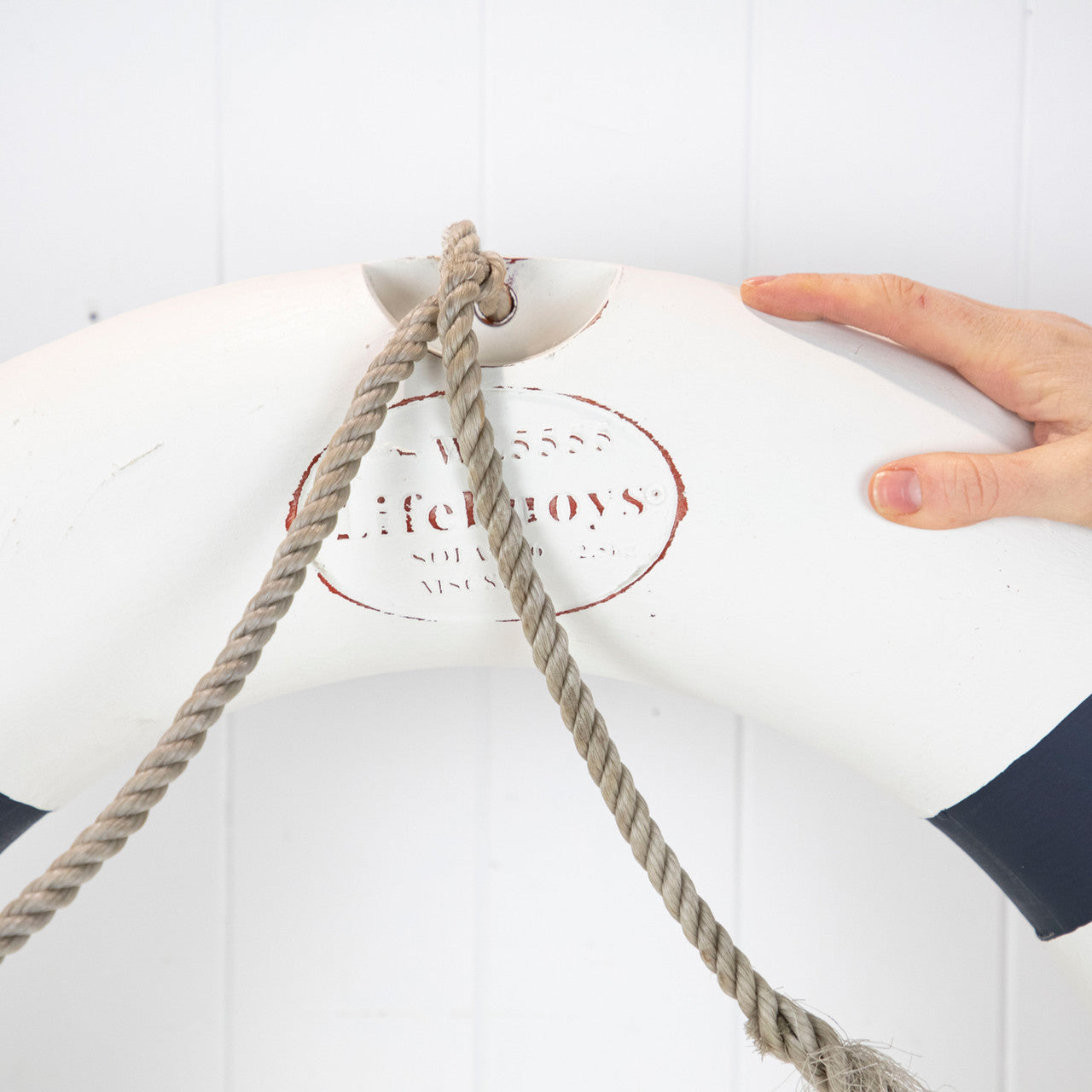 • Your life ring will be custom painted in the colours shown here, however as each is a truly authentic item, it will display different markings and rope, reflecting its life at sea.