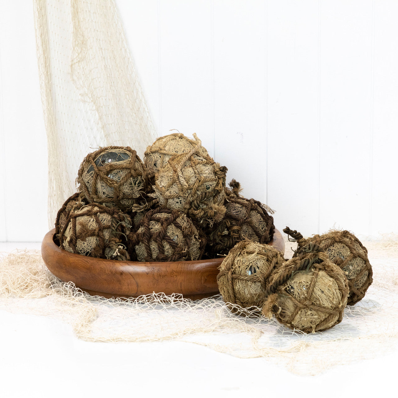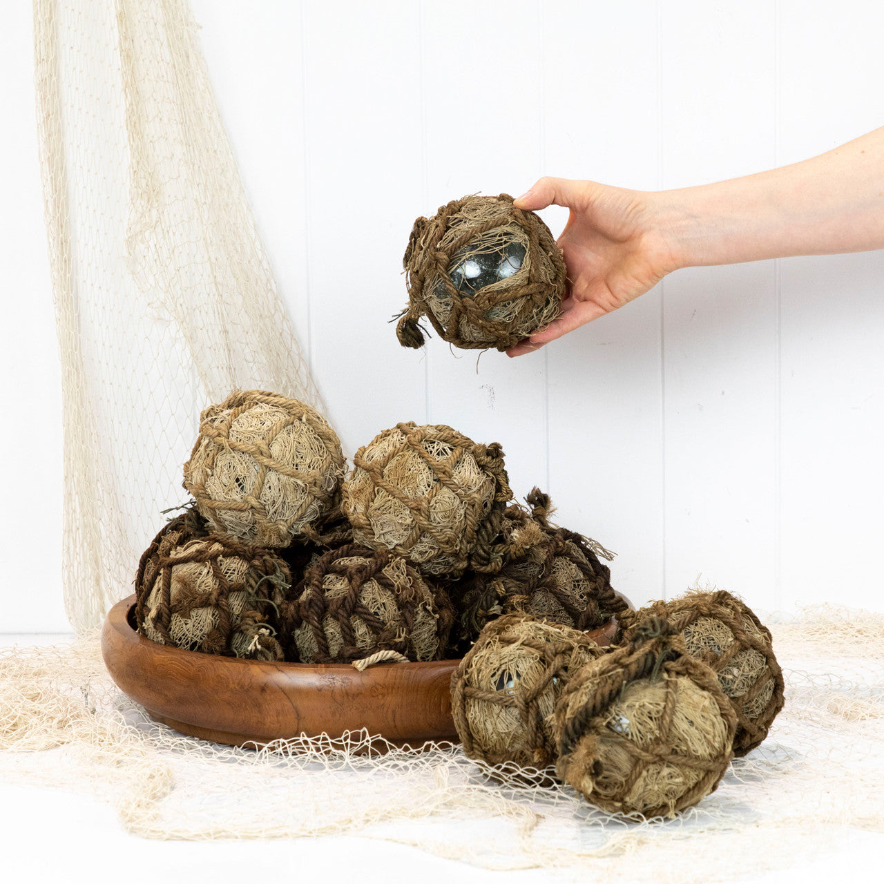 Once lining the edge of large fishing nets, these floats look mazing on mass in a bowl, or one or two on a shelf to add some texture and interest.