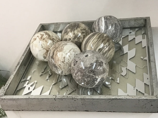 • 这套由六个大理石纹陶瓷球组成的套装为现代客厅增添了奇特而百搭的风格。这套球体增添了适应性强、时尚的美感。100% 陶瓷制成。每个球的尺寸为 10x10x10 厘米。