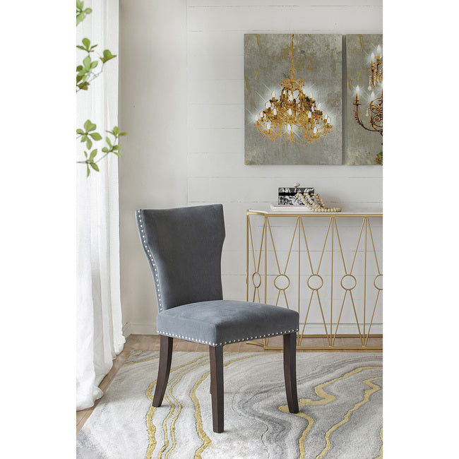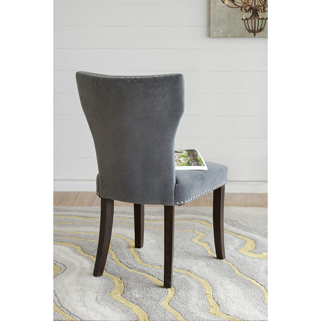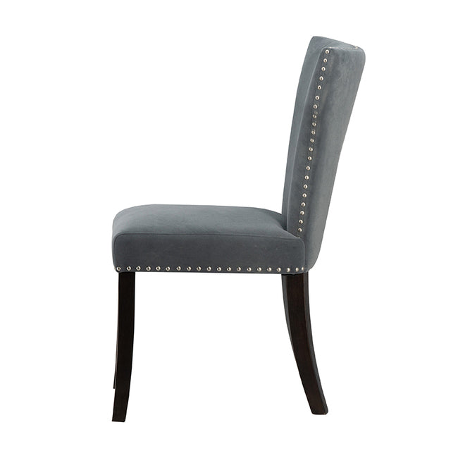 铆钉灰色天鹅绒外观无扶手餐椅 2 件套