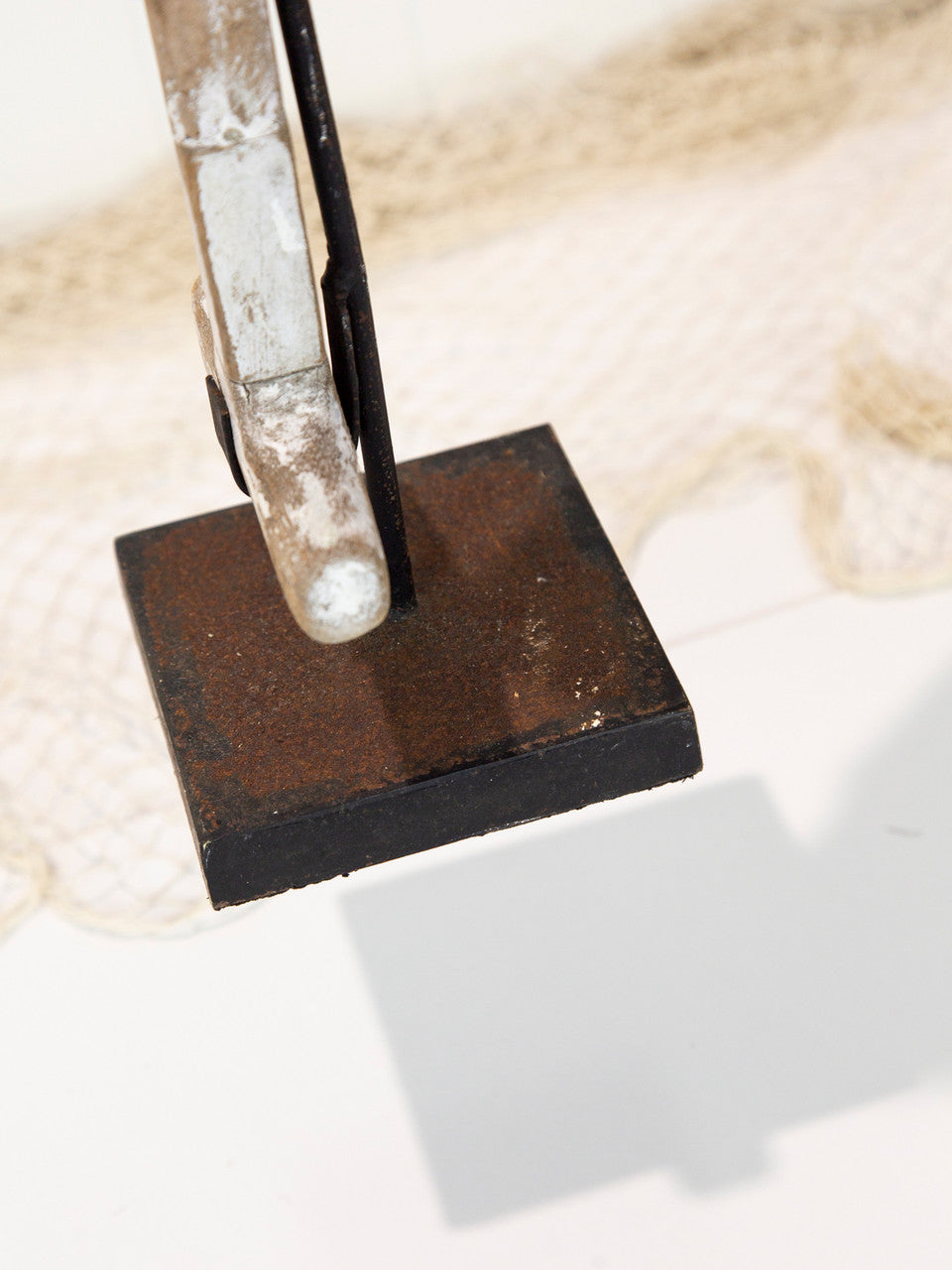 • This old whitewashed paddle has been fitted with a custom stand for display.