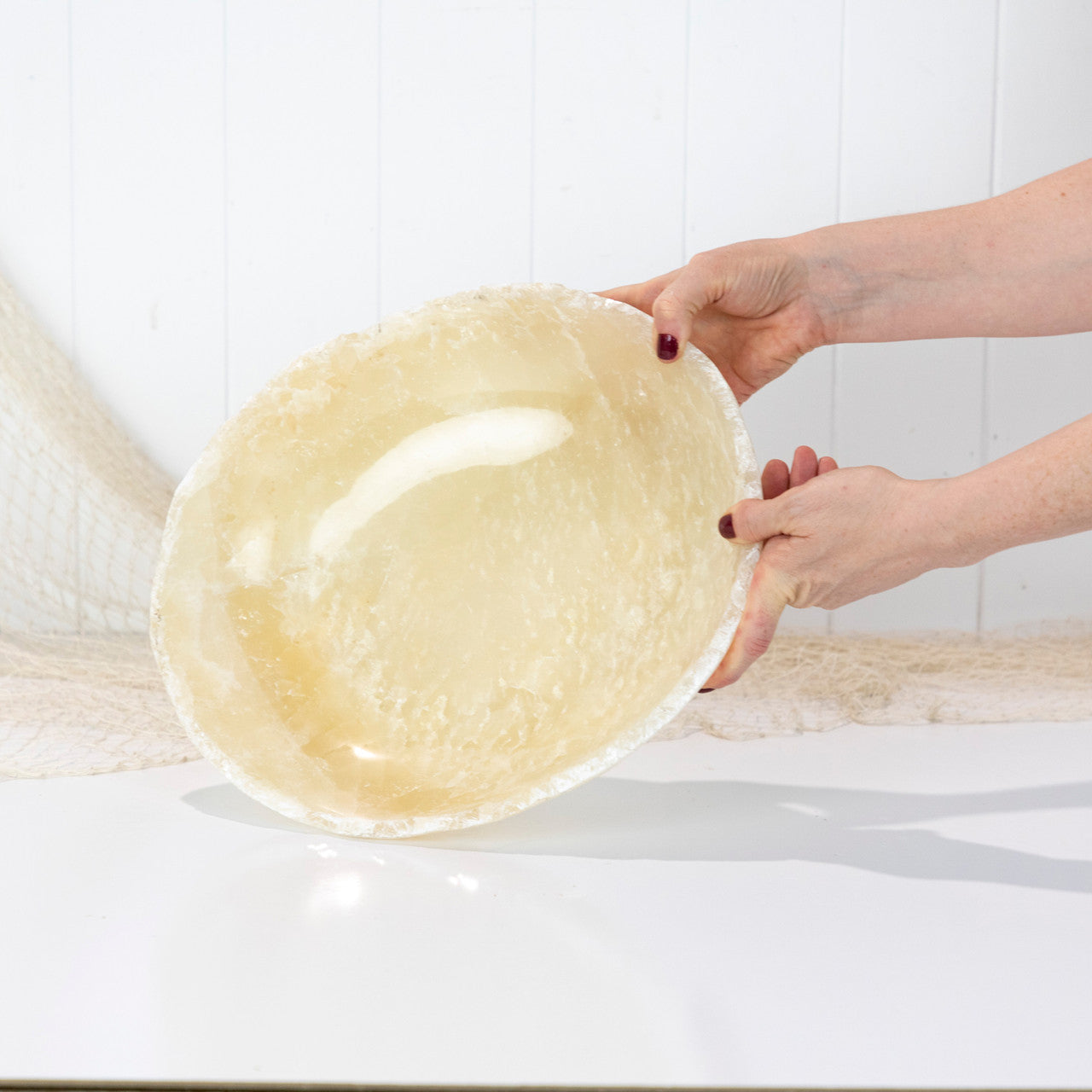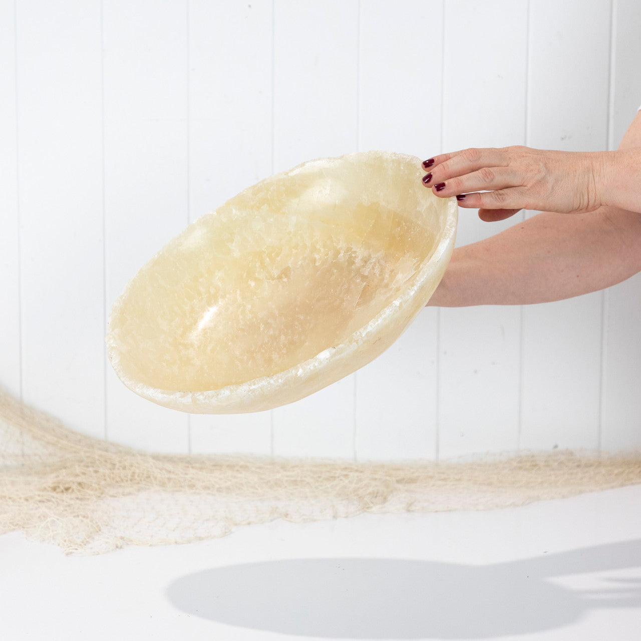 • This piece of onyx has been carved and polished into a large bowl.