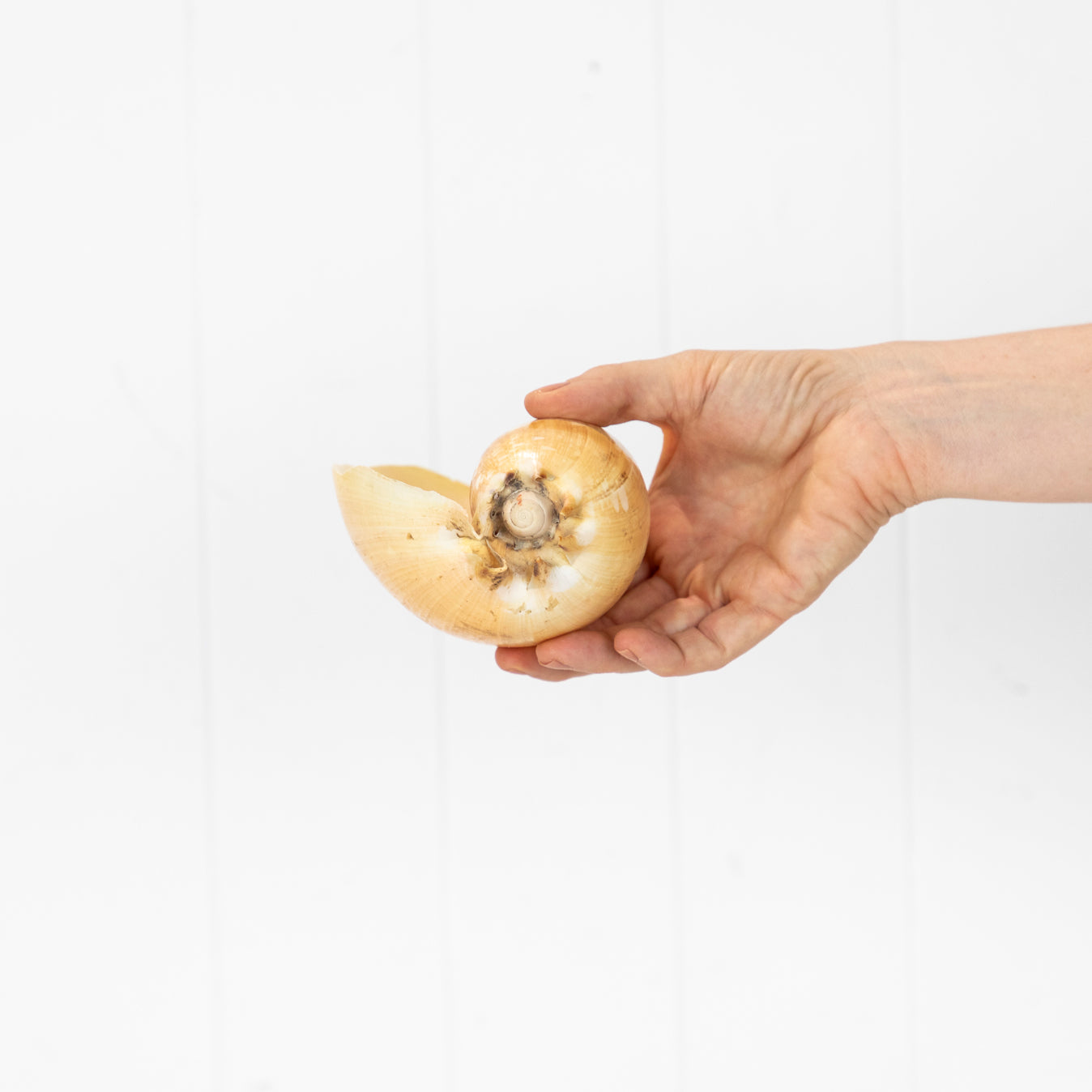 • This lovely old baler shell has soft buttery tones.
