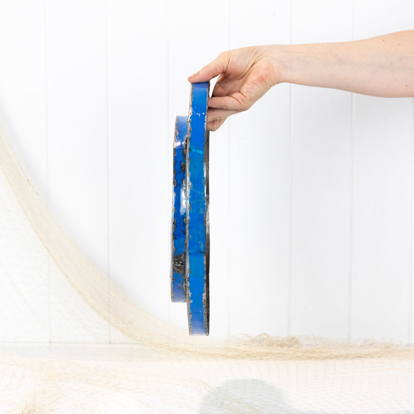 • These porthole style mirrors have been custom made from repurposed metal drums.