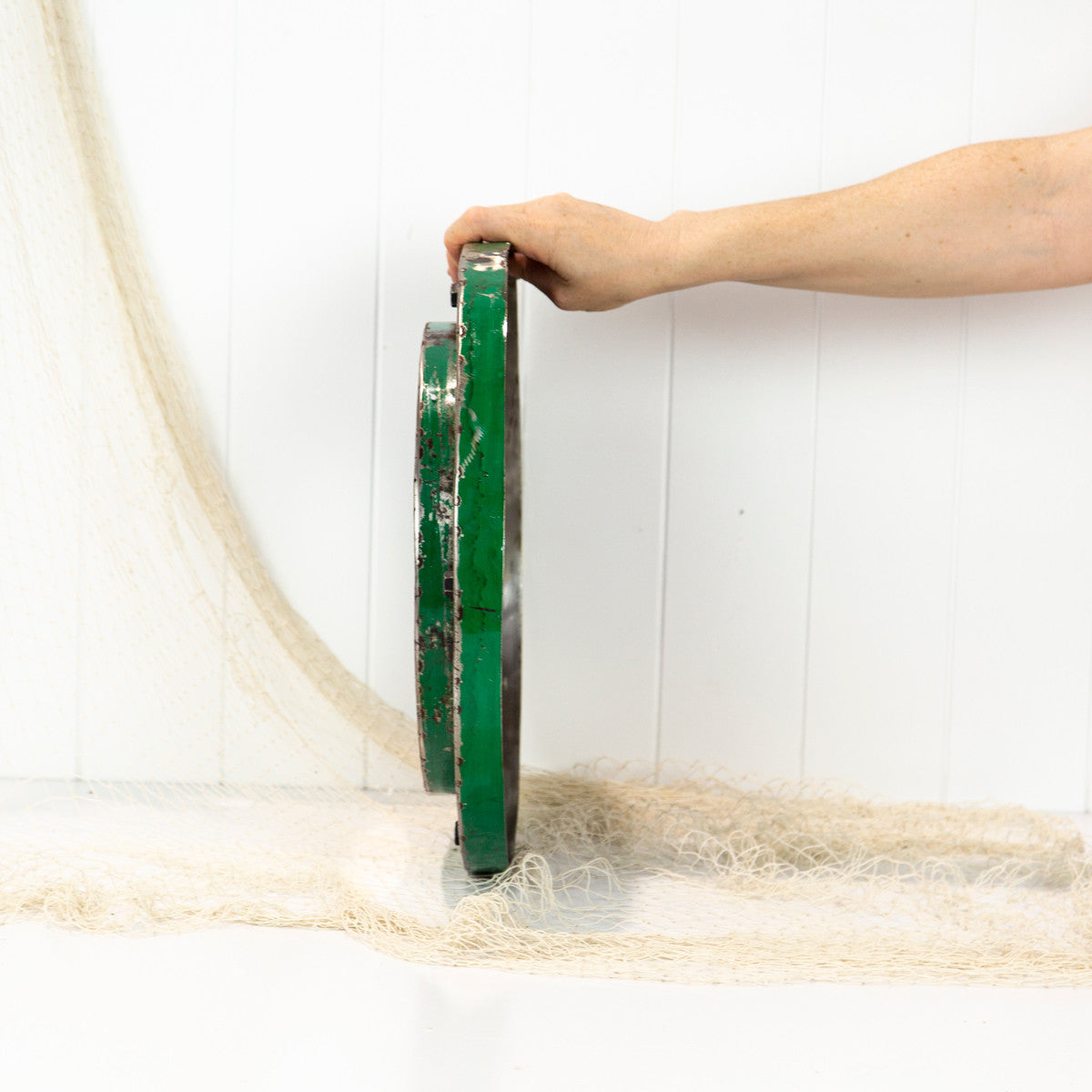 Due to the repurposed materials it has a wonderful texture and patina, each mirror  is slightly individual and may have text, but equally beautiful. More rust may form over time.