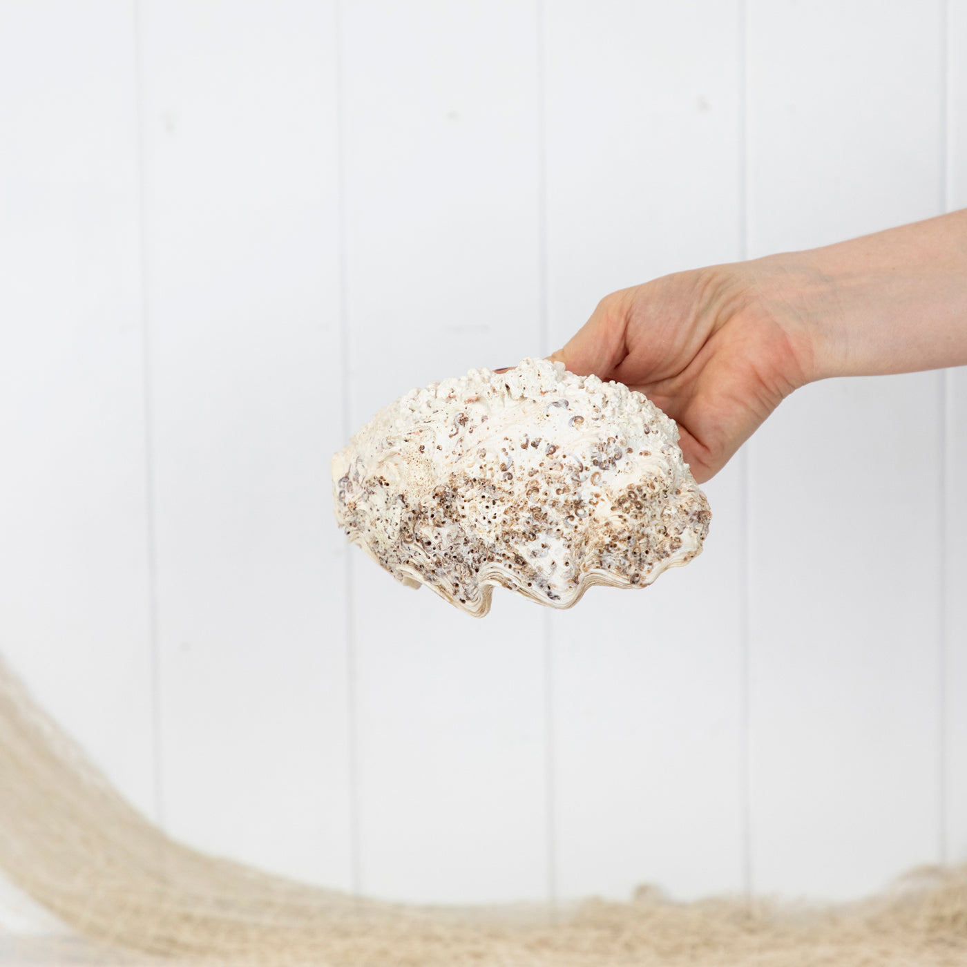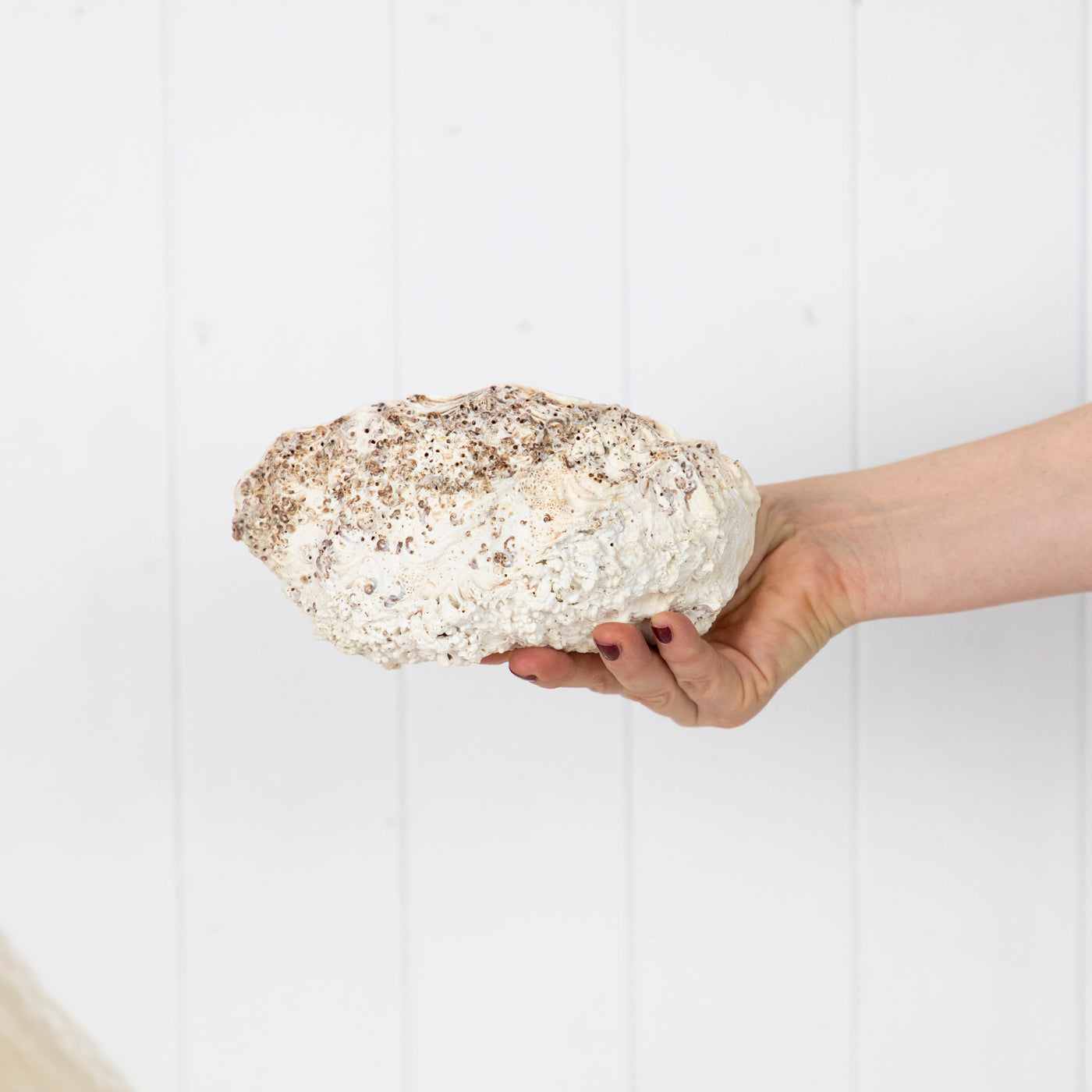 Faded with age it is pitted and grey on the outside with gorgeous barnacle growth.