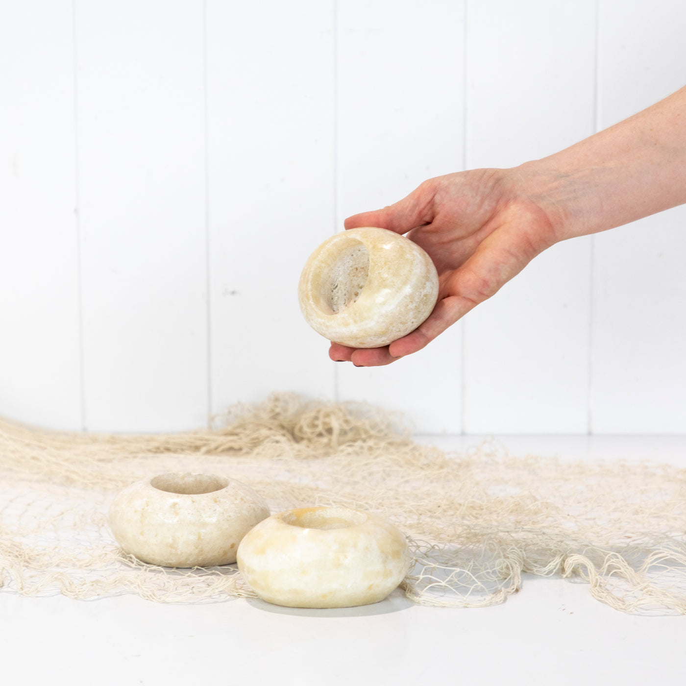 • 这个茶灯烛台是用奶油色的石头制成的!
