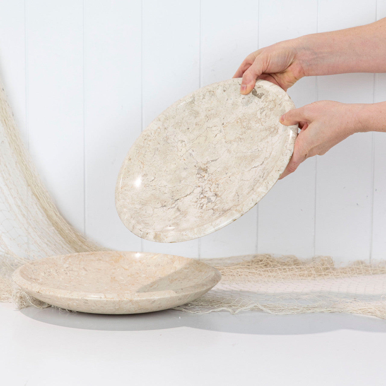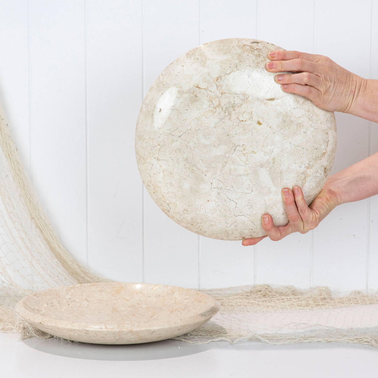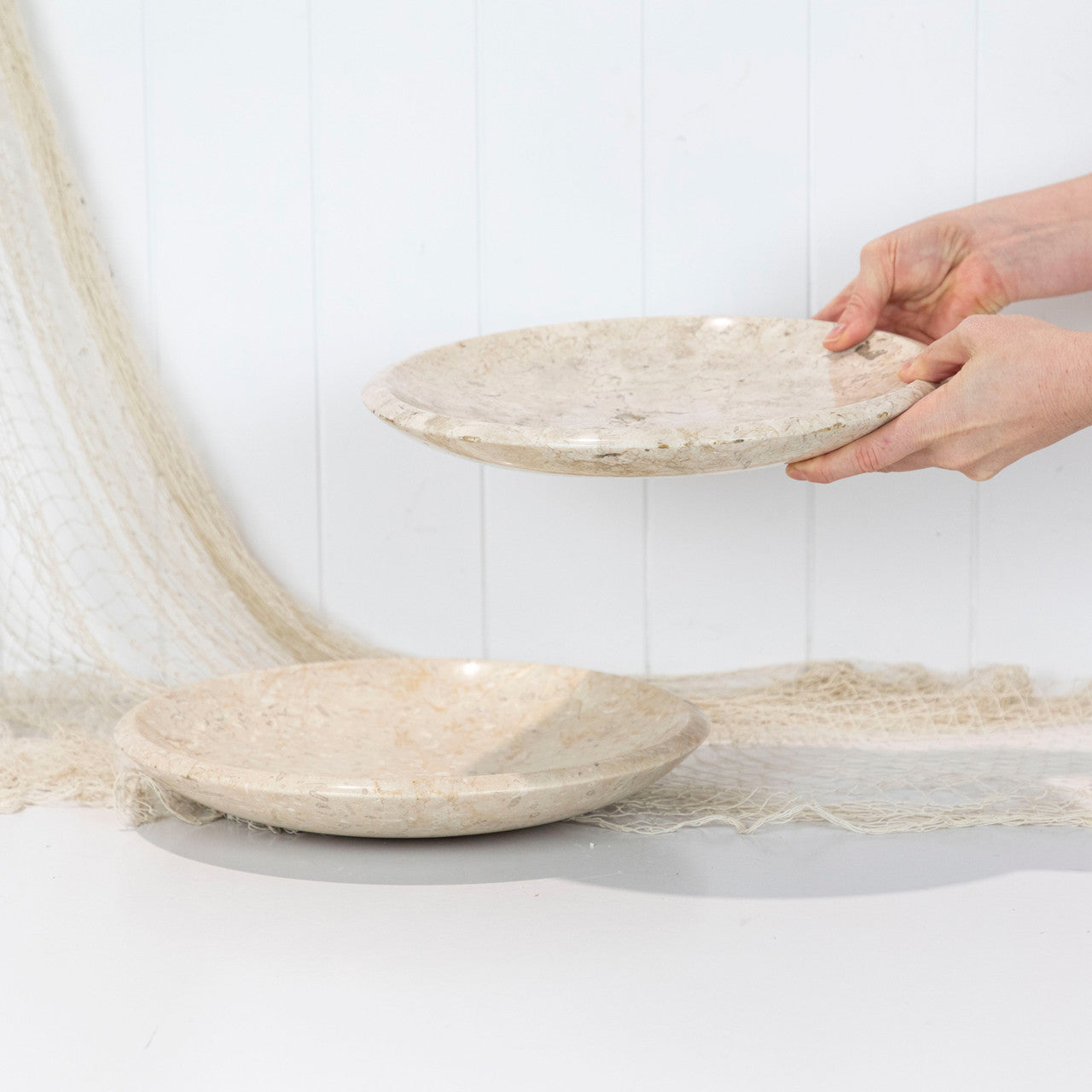 • 这些盘子是用美丽的天然大理石手工制作的。