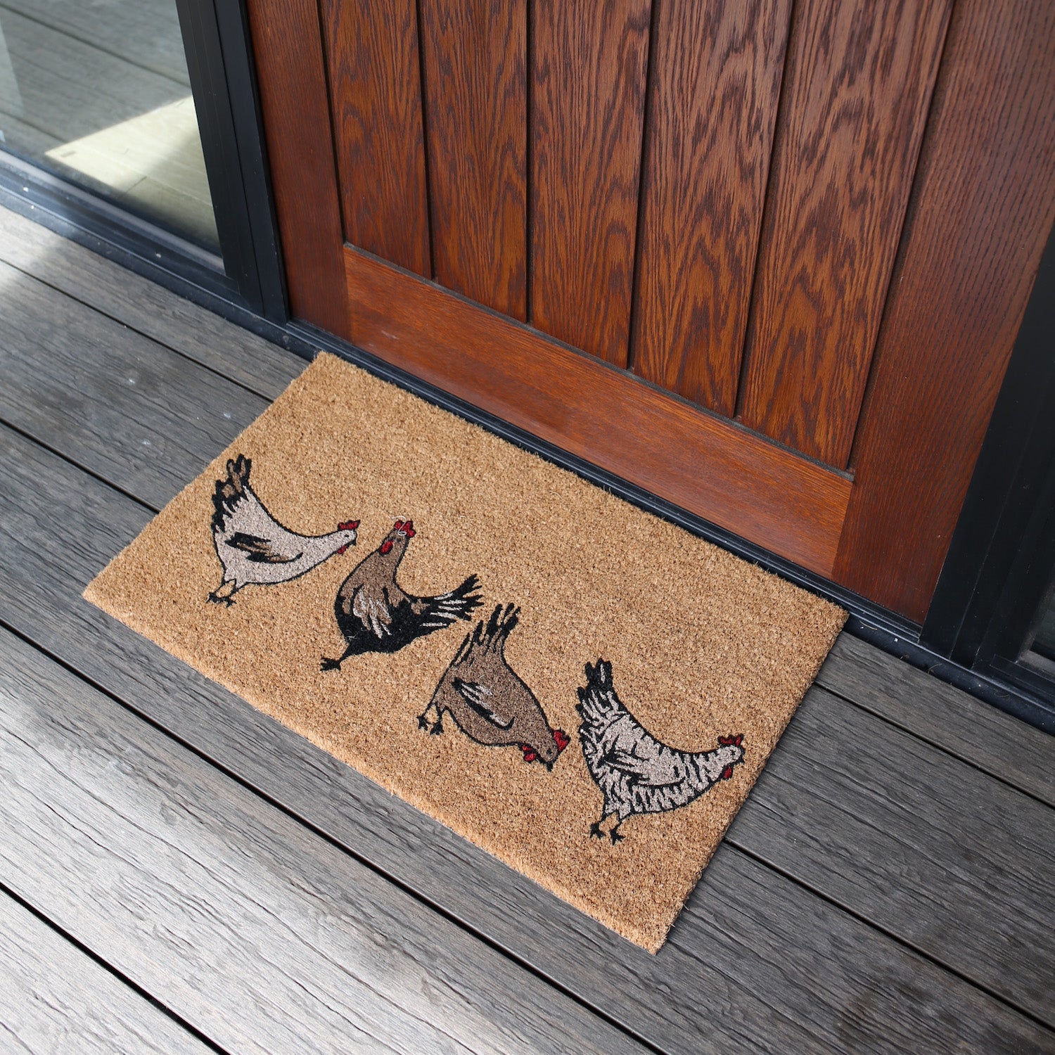 • 欢迎您的客人光临,我们独有的“小鸡”印花图案印在天然椰壳基座上,背面覆有耐用的乙烯基。