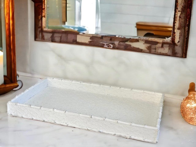 • 用我们的新加坡白色编织托盘提升您的餐具档次。这款矩形托盘采用白色编织设计,为任何餐桌布置增添一抹精致。33x20厘米的完美尺寸,非常适合盛放开胃菜、甜点或装饰。这款精致托盘将提升您的待客体验。