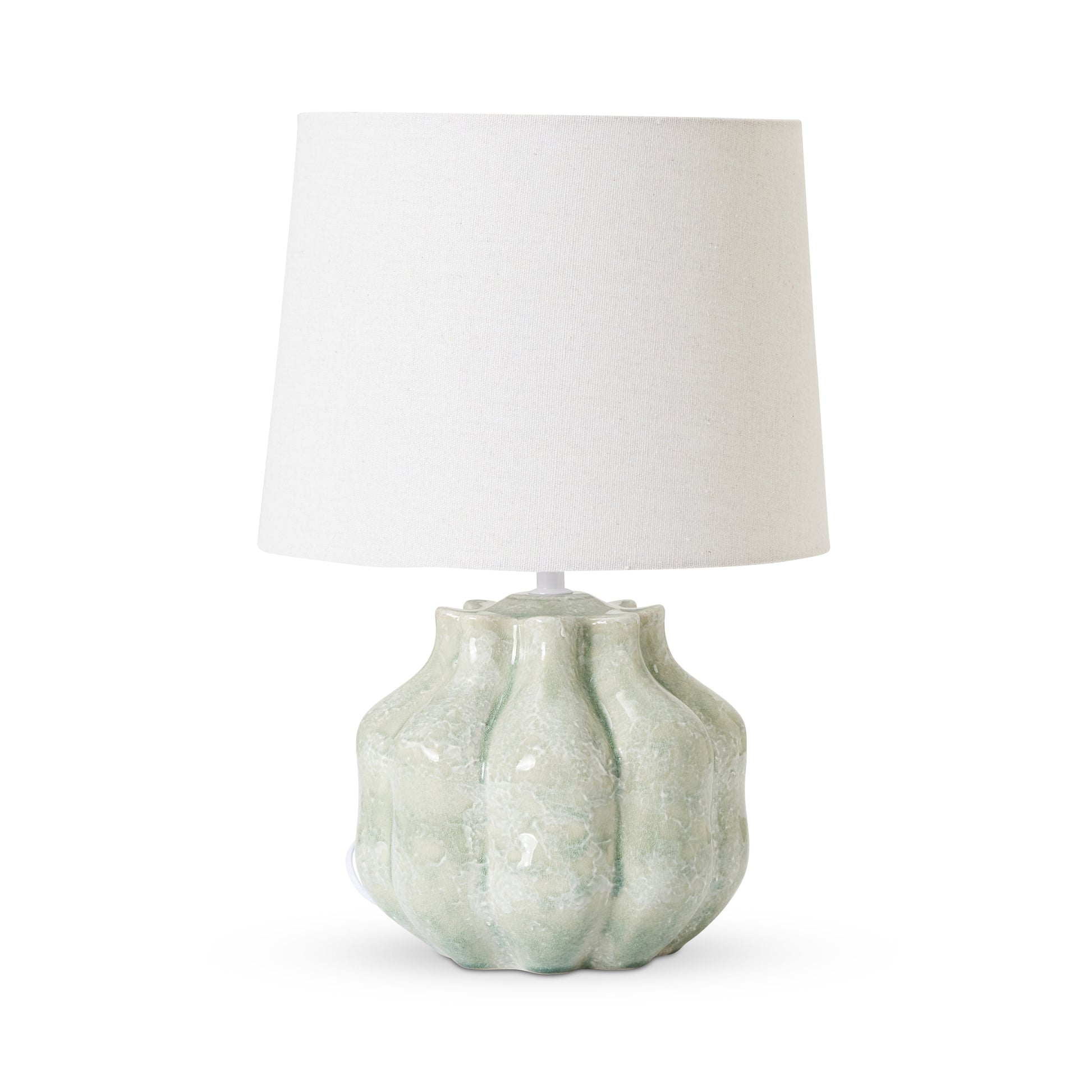 • 陶瓷绿色底座灯,配有锥形白色灯罩。