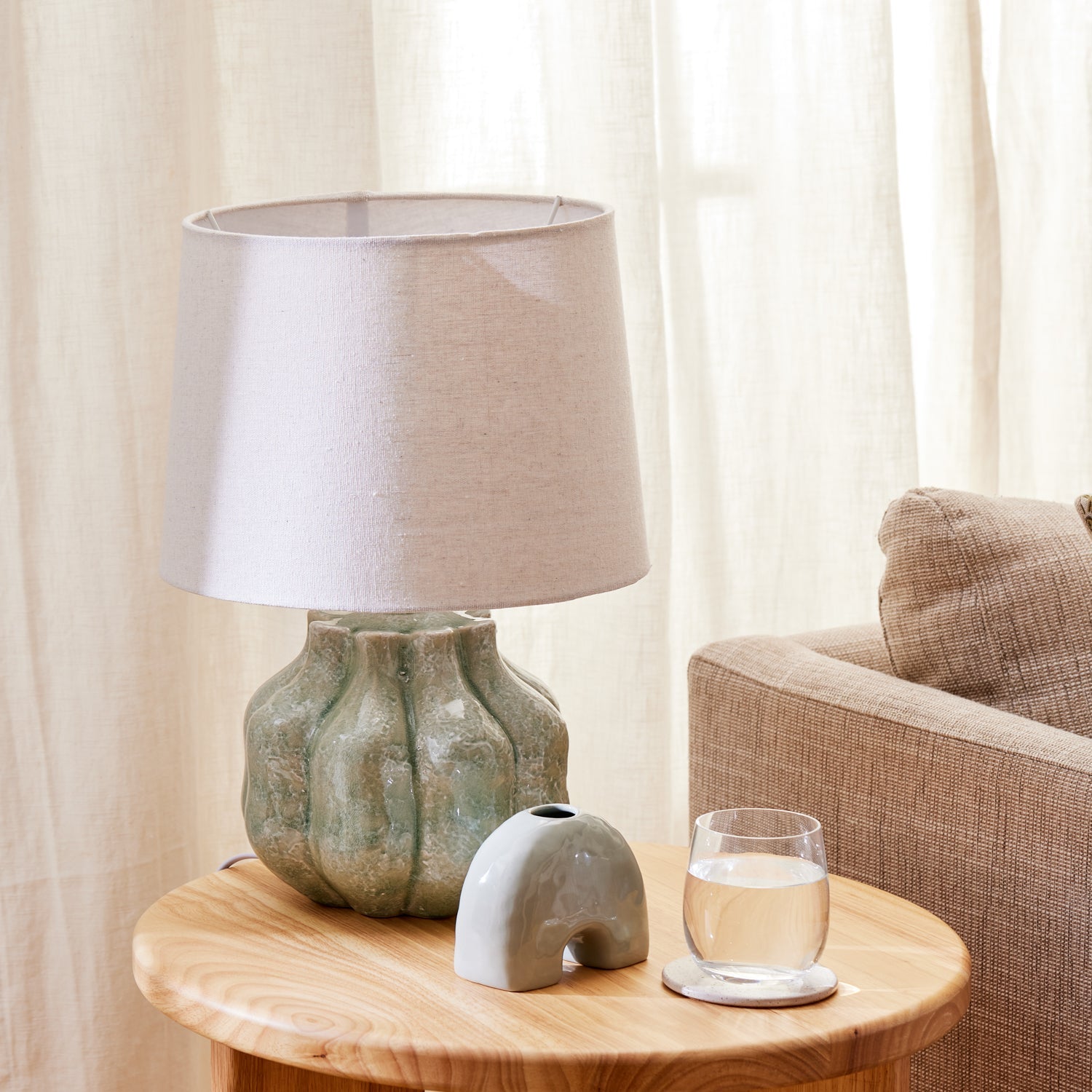 陶瓷底座搭配亚麻混纺色调